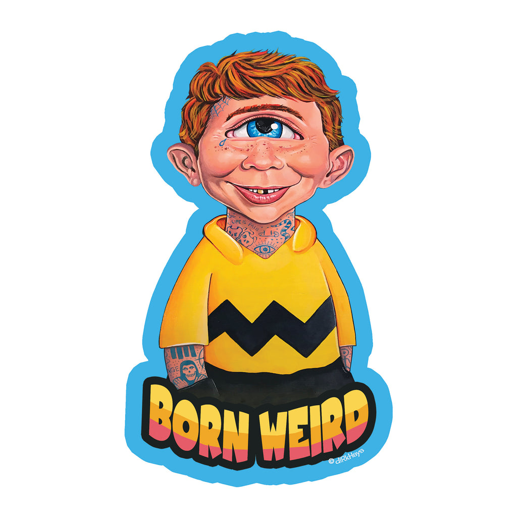 This sticker, created by Atlanta artist Dirk Hays, features Neuman as a tattooed-cyclopse. It measures 6" tall by 3.5" wide.