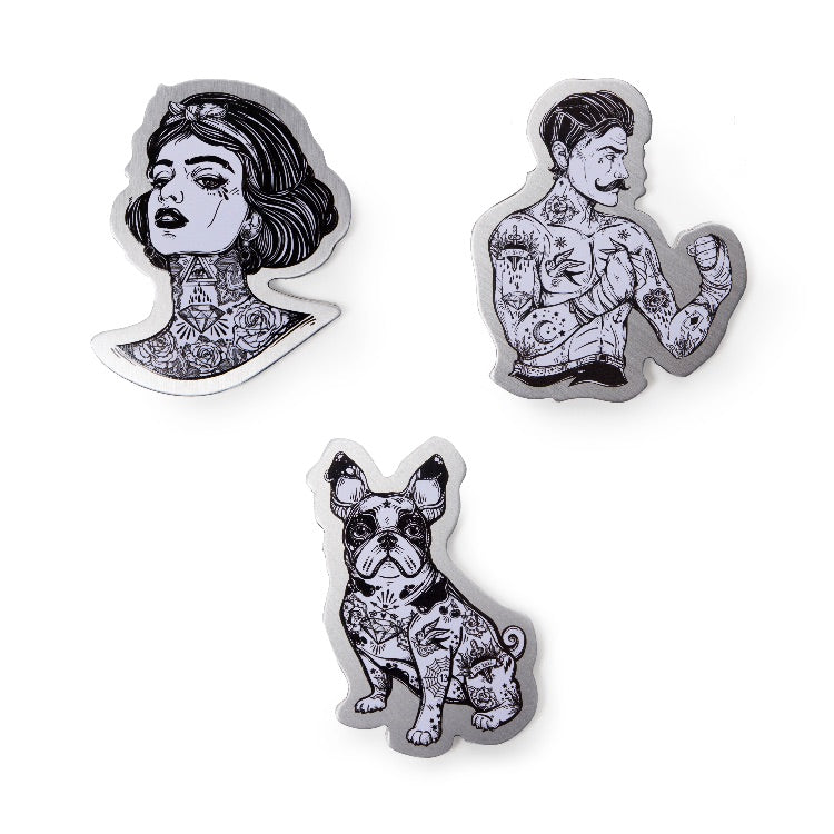 She is a biker, he is a fighter, and the dog is too cool for school. This set of 3 premium magnets is the perfect gift for your inked friends and family.