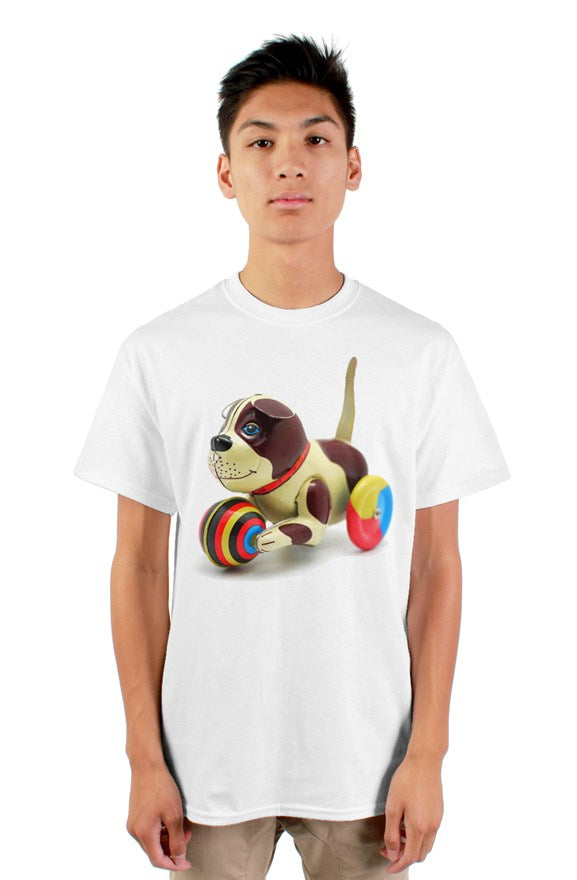 This tin dog toy caught my eye on Ebay so I decided to give him a new home. I liked the way his colors popped and knew he would look cool on a t-shirt. If you like dogs as much as I do then this t-shirt is sure to put a smile on your face.